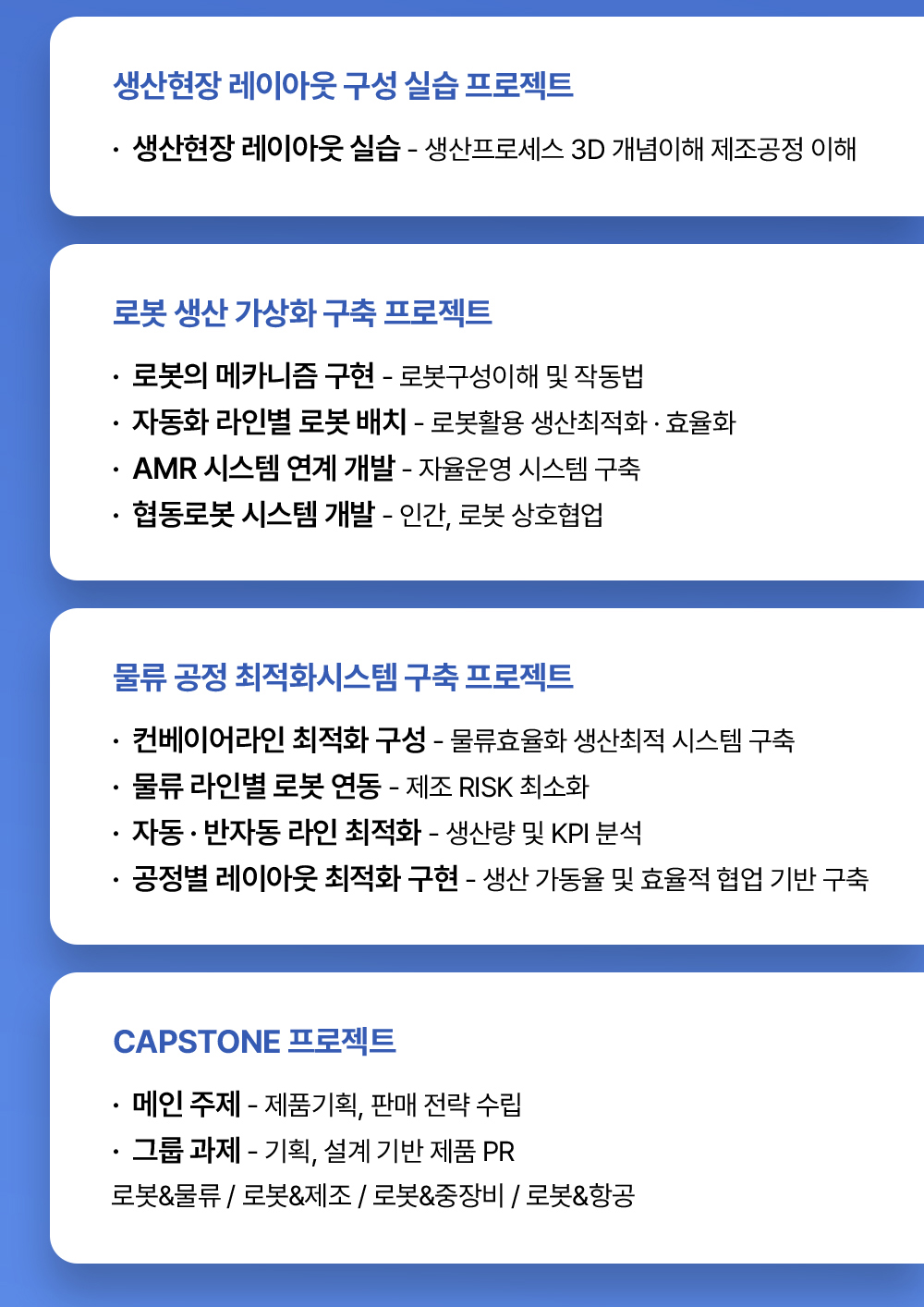 - 특화과정 : 모델링·생산공정·자동화·구조해석·시뮬레이션 특화 교육과정