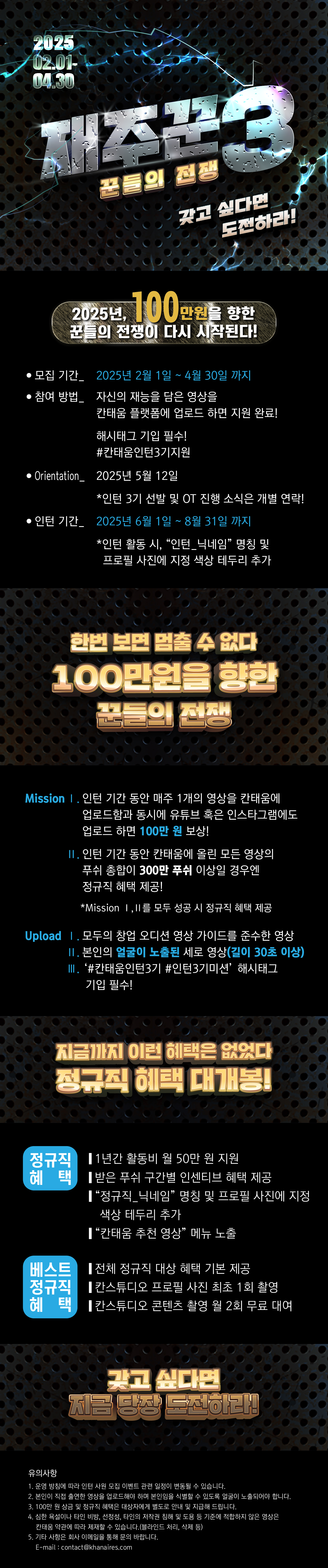 인턴으로 선정되어 활동을 하면 활동지원금 100만원을 드립니다!
