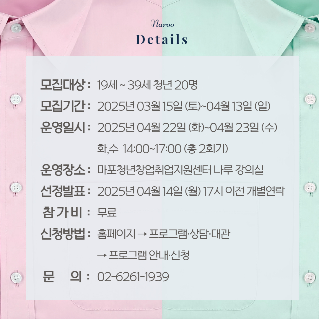 #마포청년창업취업지원센터나루 #청년공간 #취창업프로그램 #무료취창업프로그램 #취업특강 #면접이미지 #퍼스널브랜딩