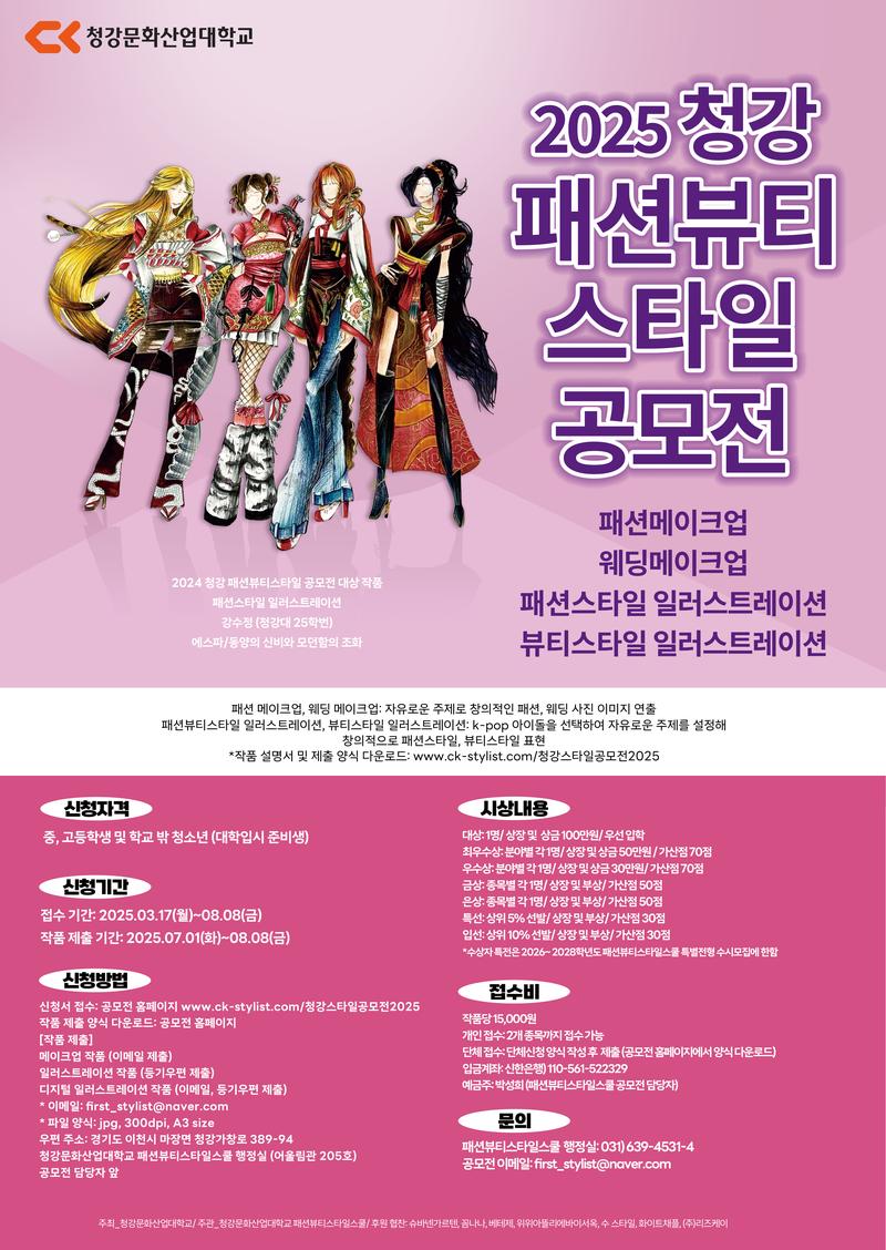 2025 청강 패션뷰티스타일 공모전에서 여러분의 감각적인 패션.뷰티.스타일을 뽐내보세요.