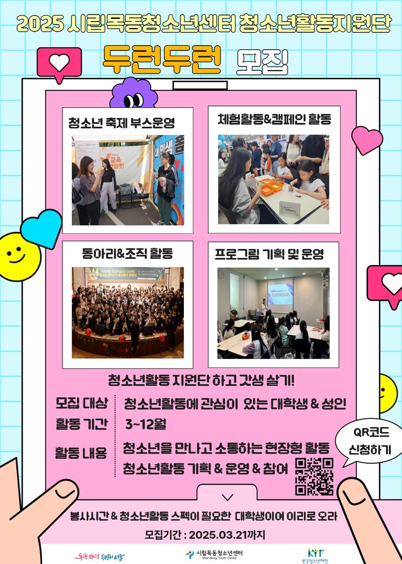 2025년 청소년활동지원단 「두런두런」 참가 대학생 & 성인을 모집합니다!