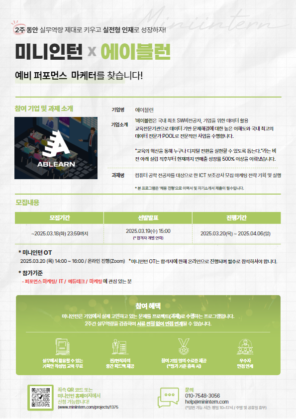 - 퍼포먼스 마케팅 기획 경험을 쌓고 싶은 분
