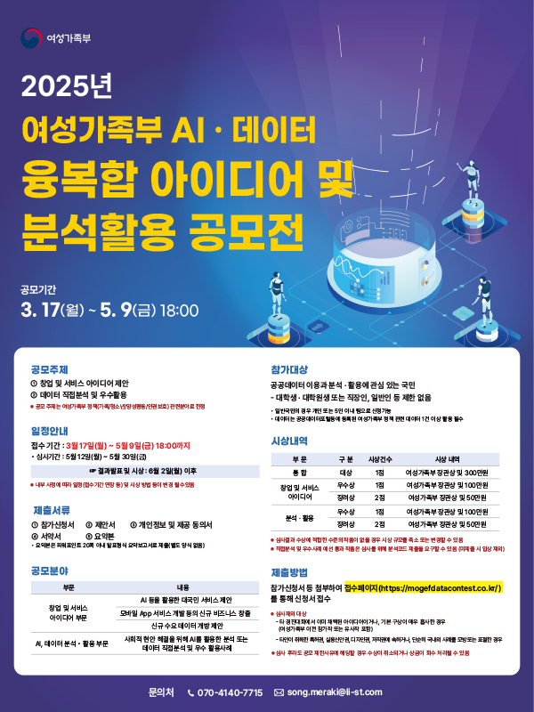 • 데이터는 공공데이터포털 등에 등록된 여성가족부 정책 관련 데이터 1건 이상 활용 필수