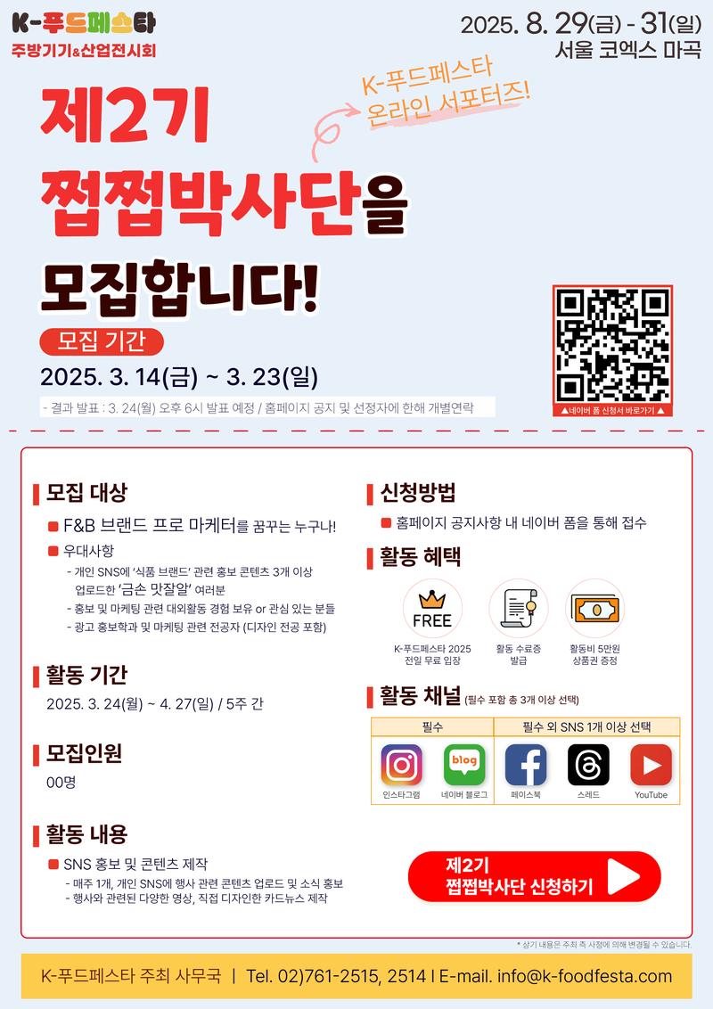 'K-푸드페스타 2025'의 온라인 서포터즈, 🥨쩝쩝박사단🥨을 모집합니다!