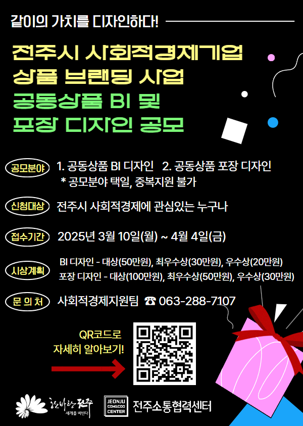 - ☏ 전주소통협력센터 사회적경제지원팀 063-288-7107