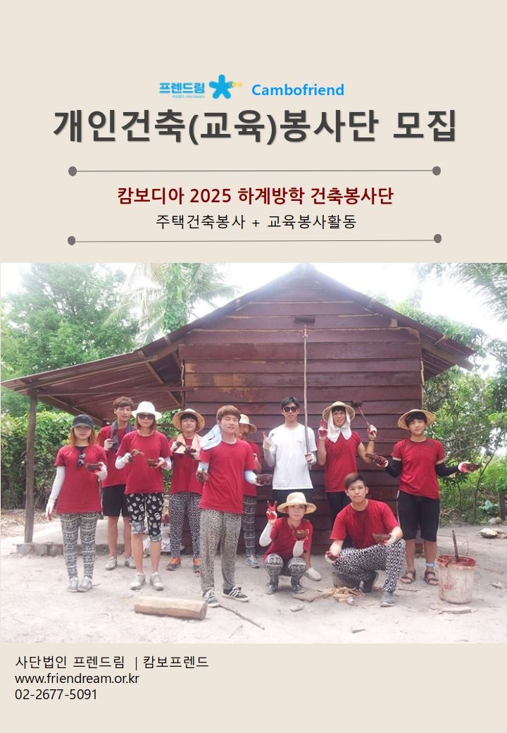 2025년 하계 캄보디아 개인건축(교육)봉사자를 모집합니다.