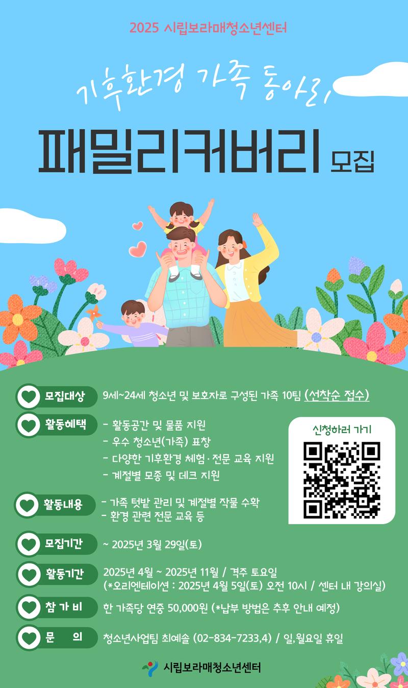 시립보라매청소년센터에서 ‘가족동아리 패밀리커버리’ 활동을 통해 함께 성장할 가족 구성원을 모집합니다!