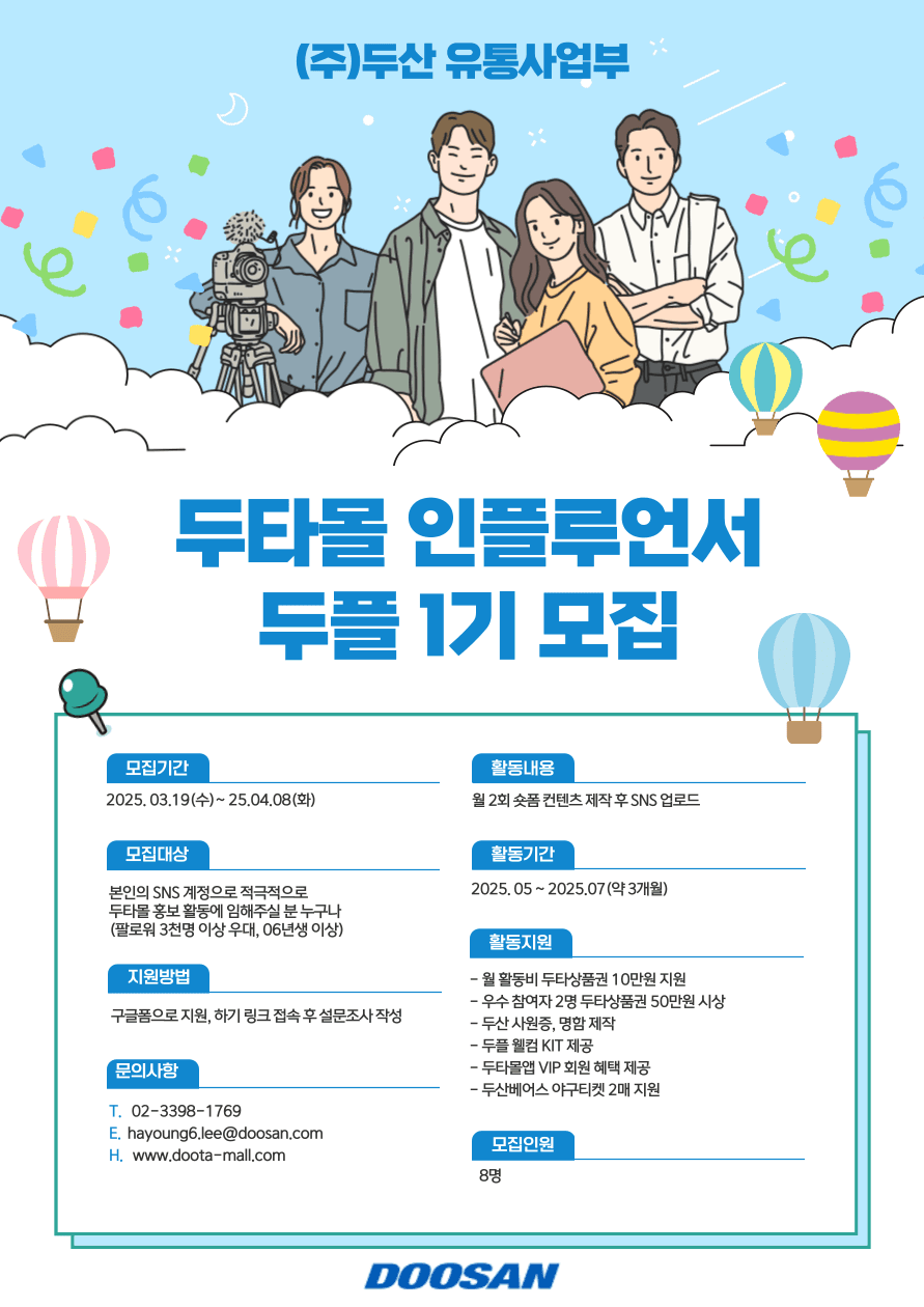 두산그룹 유통사업부에서 두플 1기 모집을 처음 시작합니다!🎤