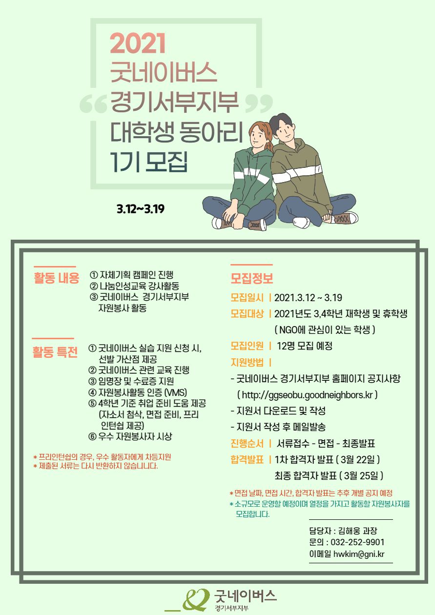 2021 굿네이버스 경기서부지부 대학생 동아리 1기 모집