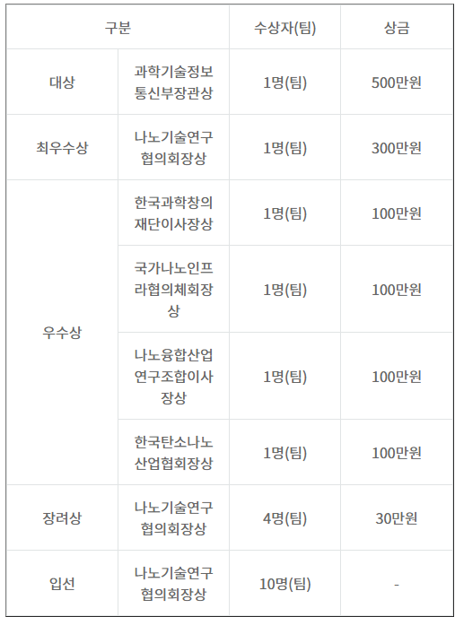 ※ 상금은 제세 공과금이 포함된 금액이며, 수상 내용은 추후 변동될 수 있음