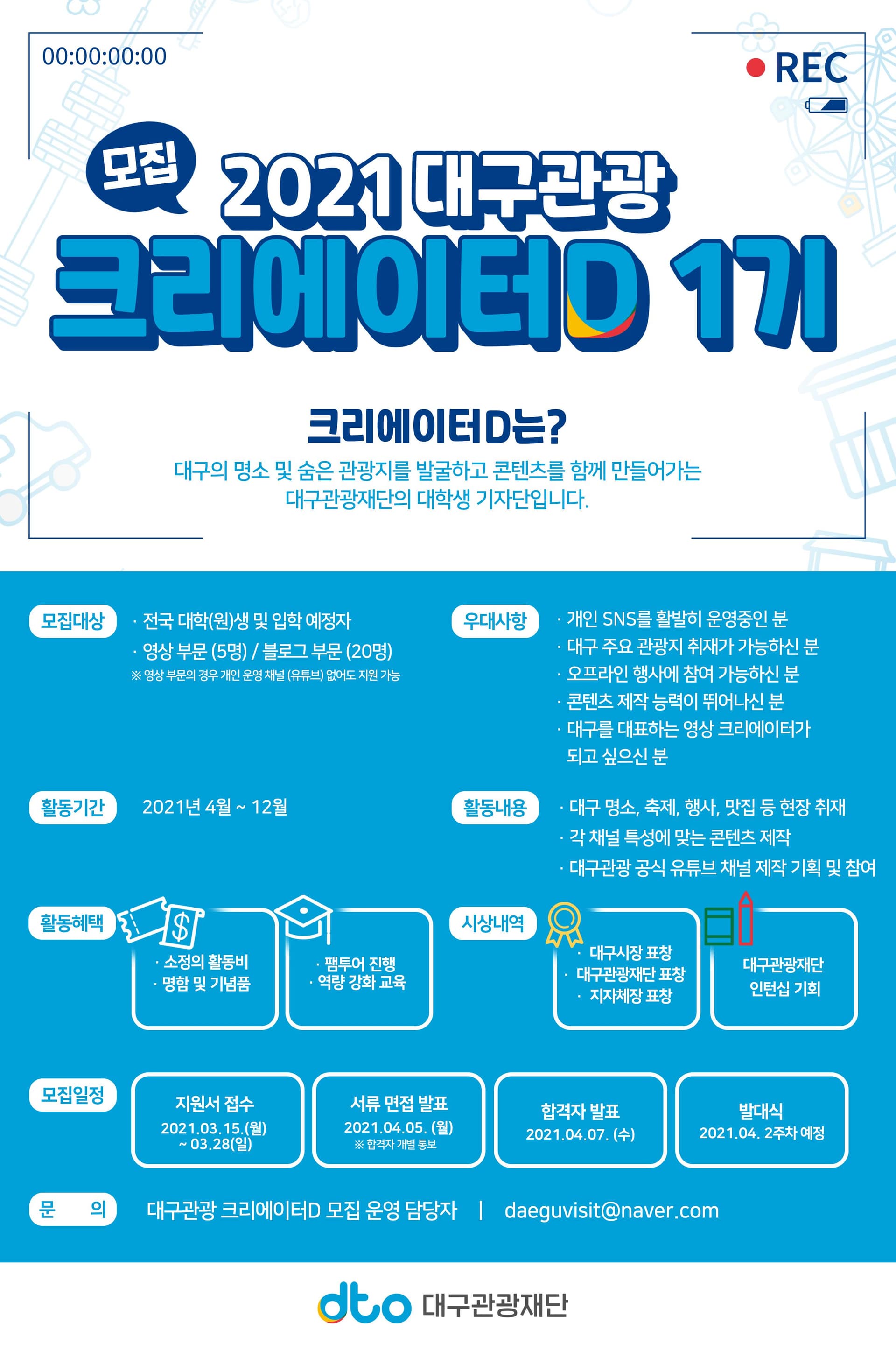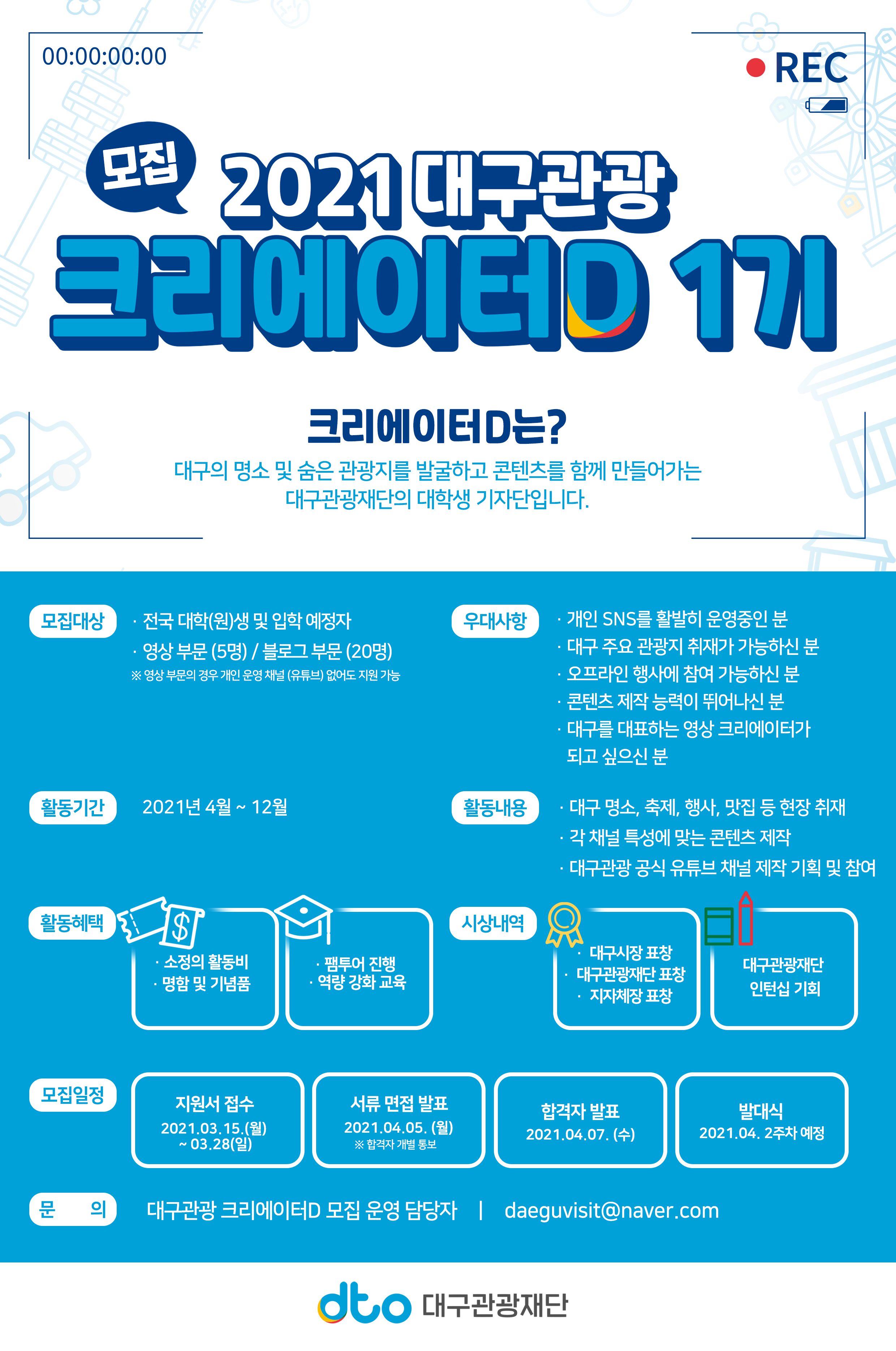 대구관광 크리에이터D 모집 운영 담당자 | daeguvisit@naver.com