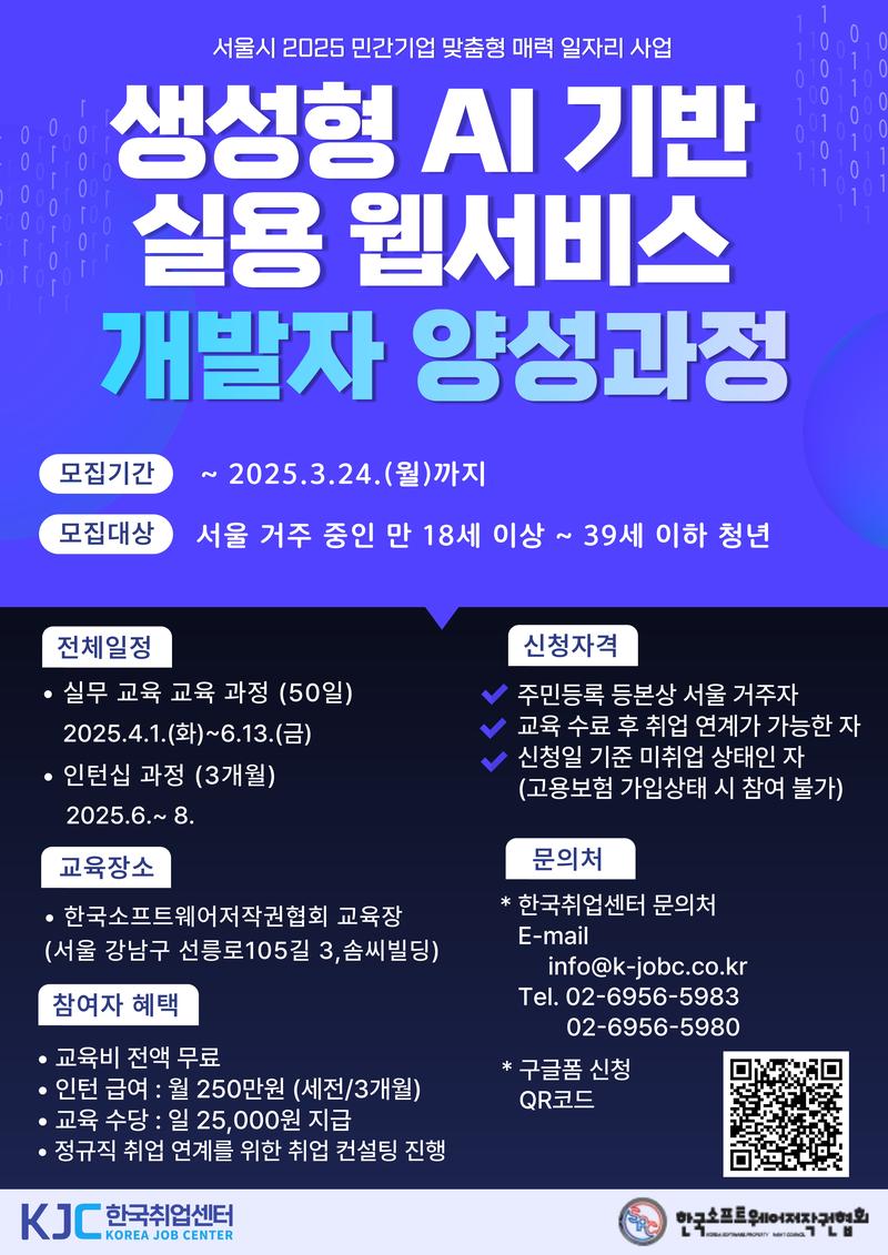 2025년도 민간기업 맞춤형 매력 일자리 사업 [생성형AI 기반 실용 웹서비스 개발자 양성과정]
