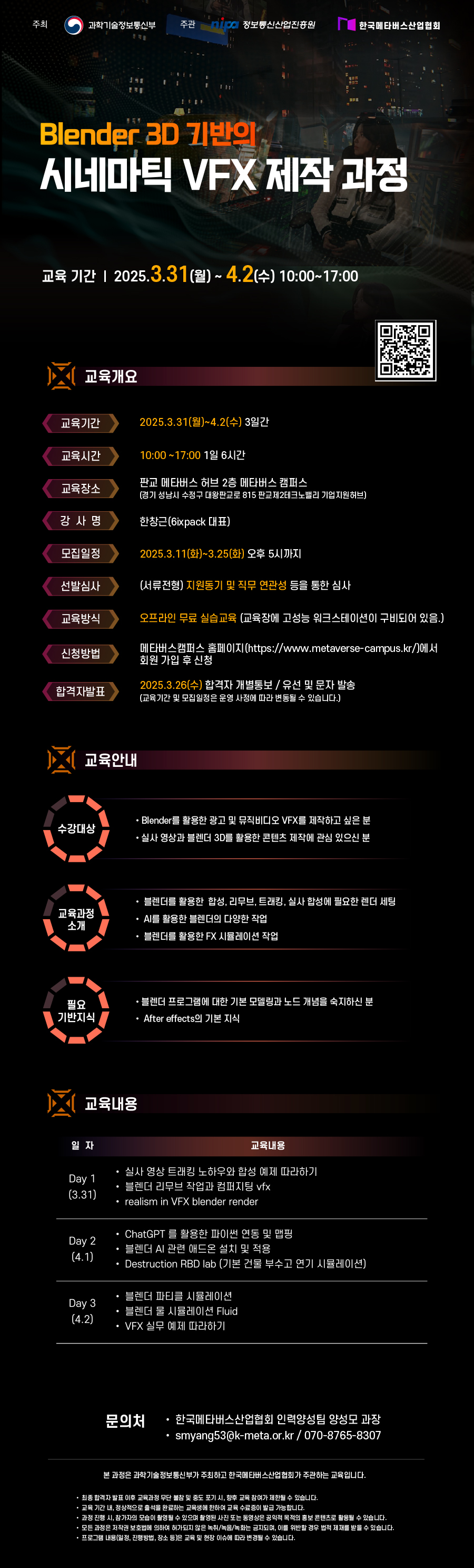 [무료교육] Blender 3D 기반의 시네마틱 VFX 제작 과정 모집 안내