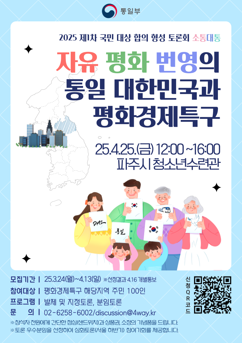 - 방법: 통일소통 플랫폼 홈페이지(www.unikorea.go.kr/promise) 및 홍보포스터 QR코드