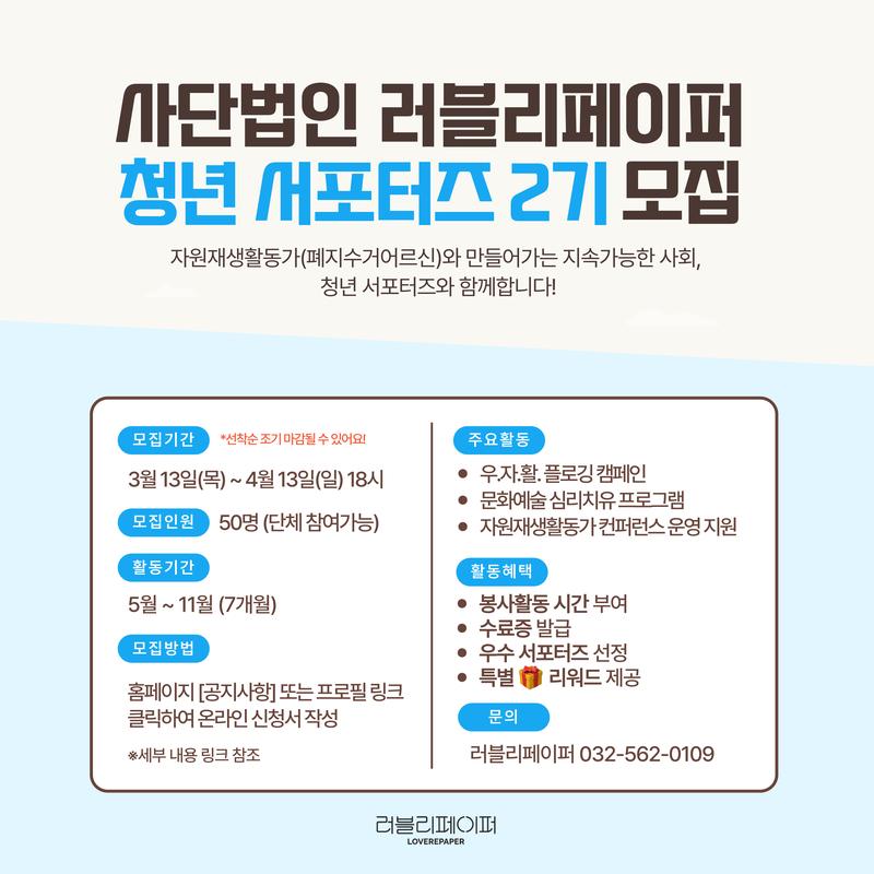 👉 [러블리페이퍼청년서포터즈 2기 참가신청] 클릭
