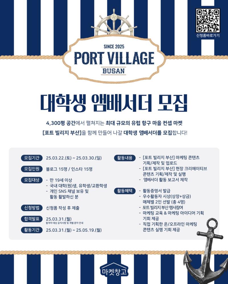 4,300평 공간에서 펼쳐지는 최대 규모의 유럽 항구 마을 컨셉 마켓 [포트 빌리지 부산]을 함께 만들어 나갈 대학생 앰배서더를 모집합니다!