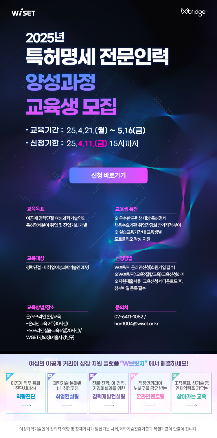 ○ 교육 대상 : 경력단절, 미취업 이공계 여성(여성과학기술인) 25명