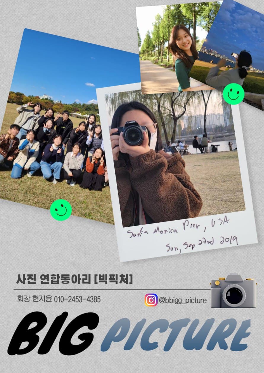 안녕하세요! 사진 찍는 것을 좋아하는 사람들이 모인 취미사진 동아리 빅픽처입니다.