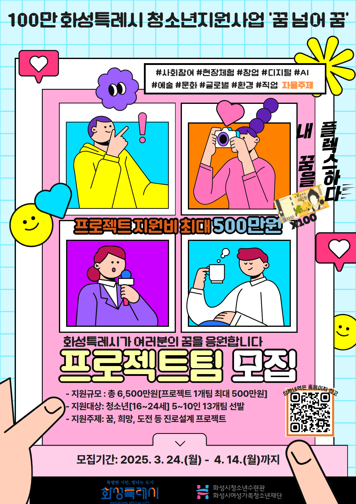 ■ 지원 자격: 화성시 거주 및 재학 청소년[16~24세] 5~10인 13개 팀 내외