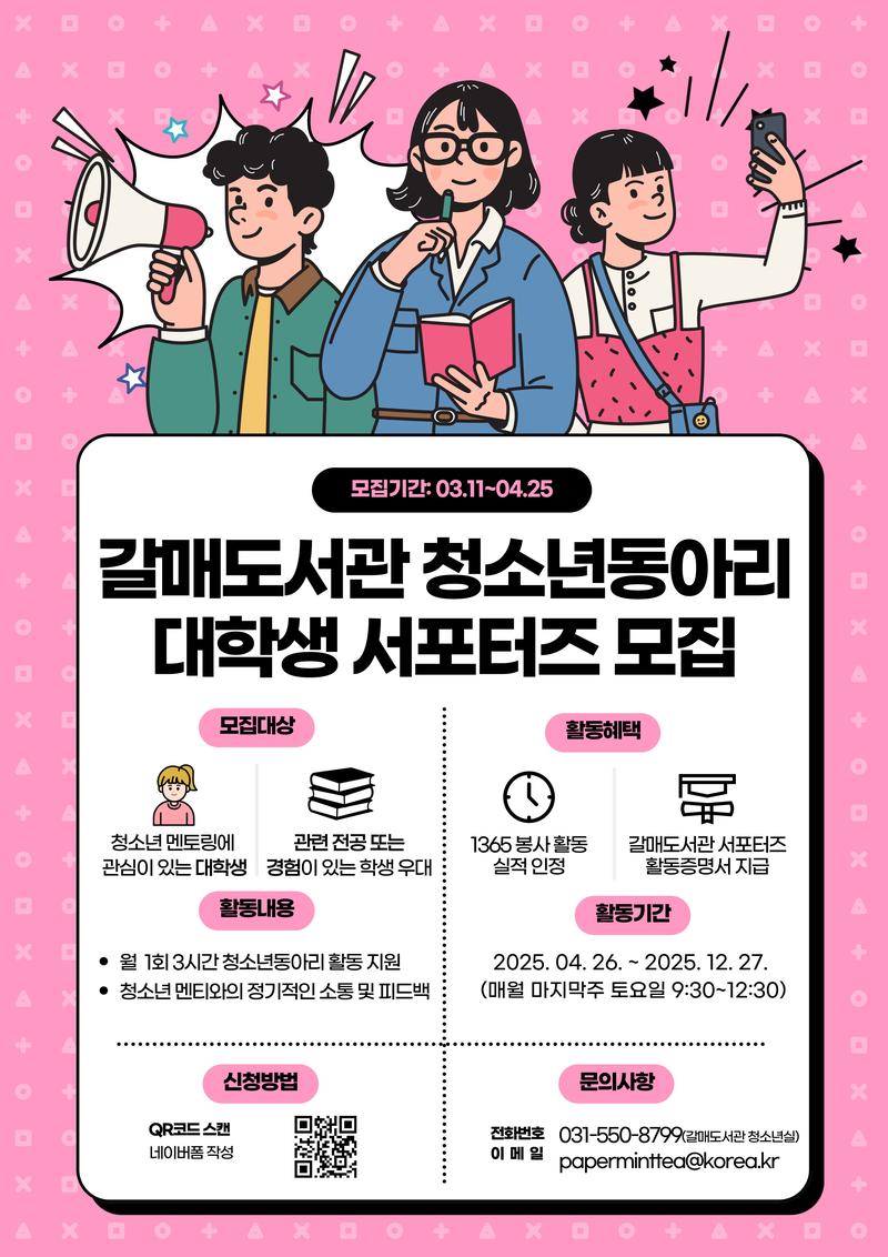 갈매도서관 대학생 서포터즈를 모집합니다.
