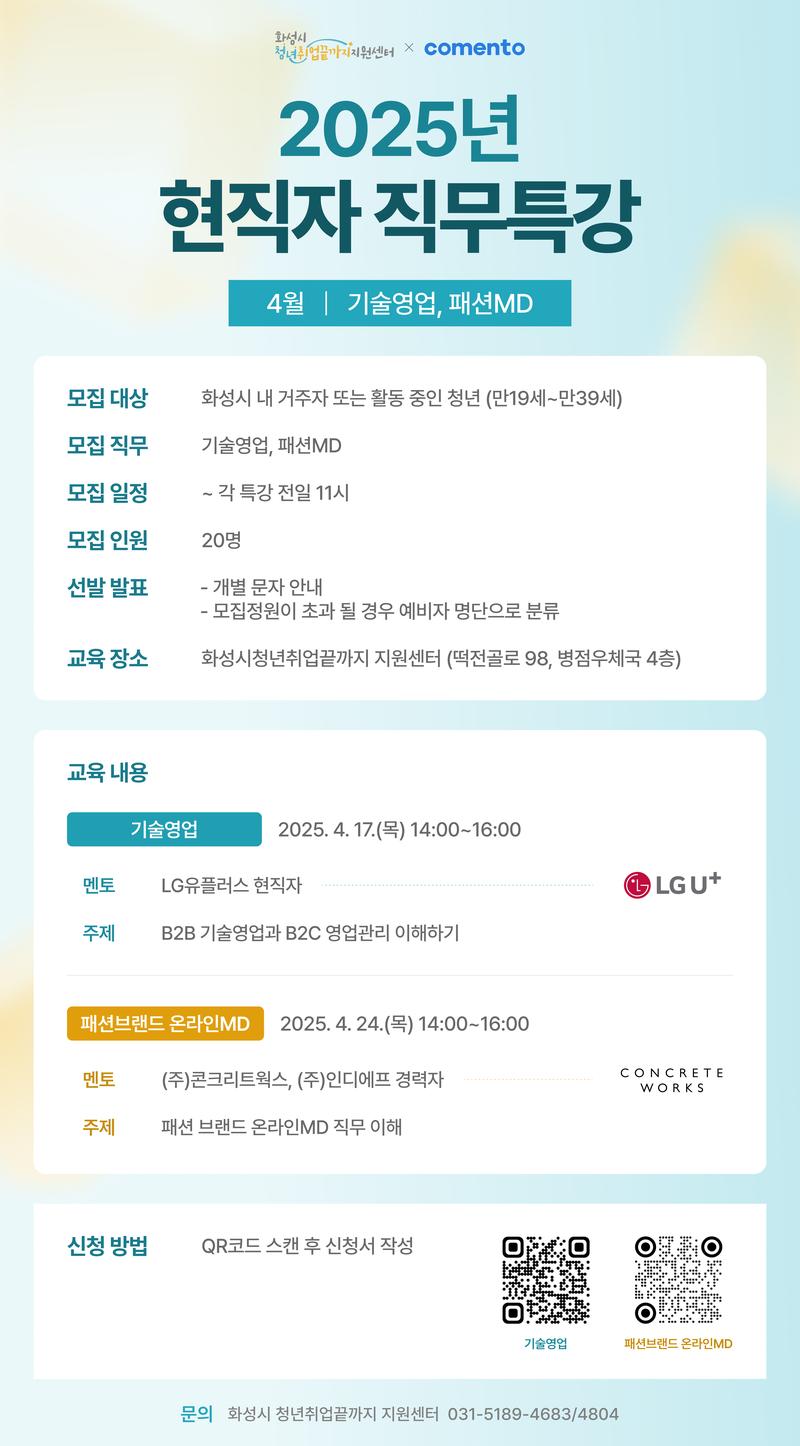 화성시에 거주 또는 활동 중인 취업 준비 청년을 위해 준비한 직무 특강|