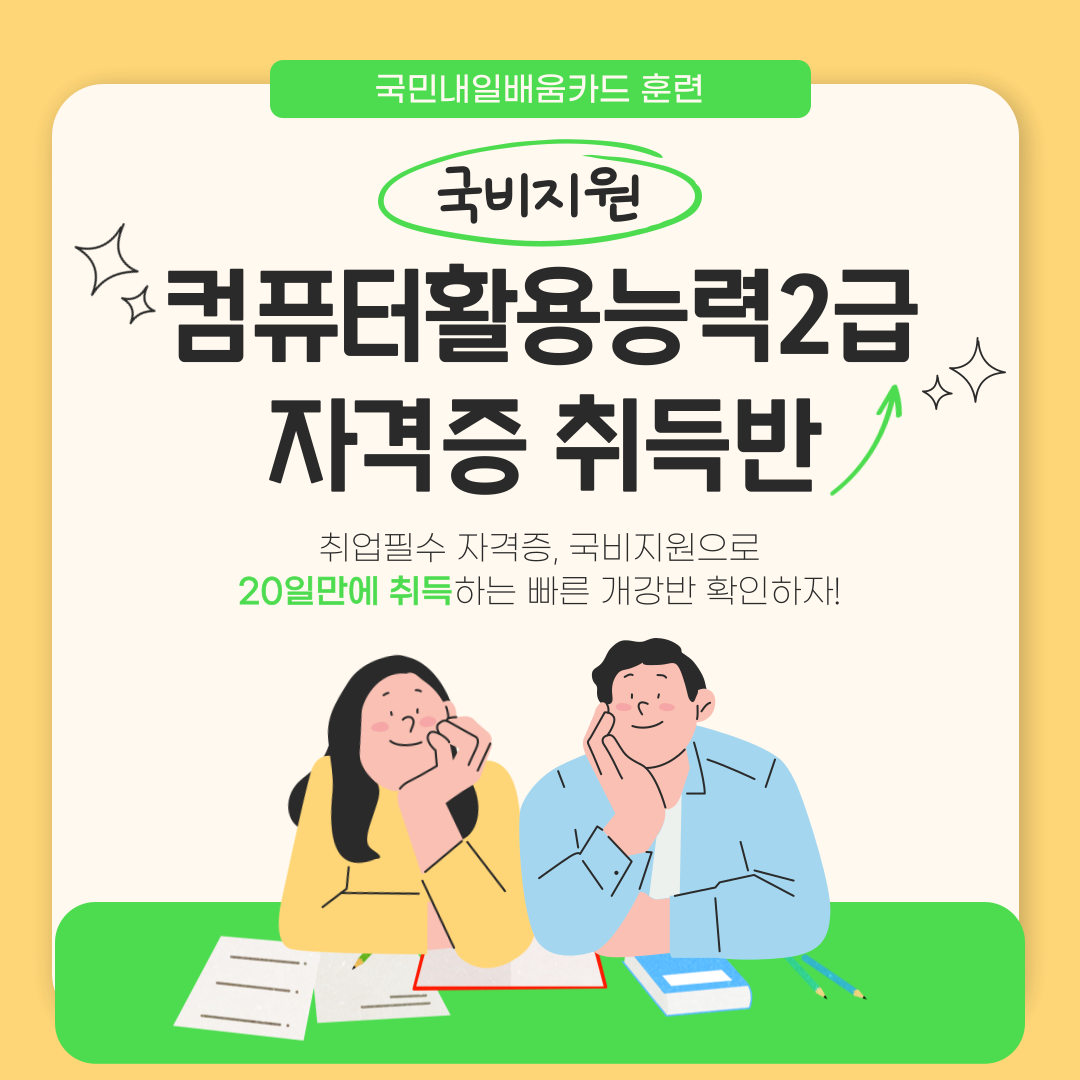 (국비지원) 컴퓨터활용능력2급 자격증 20일 완성반