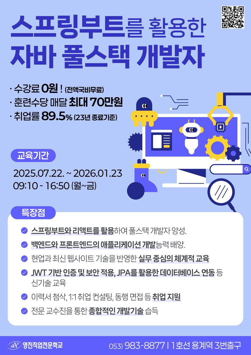 본 과정은 Spring Boot를 활용한 프론트엔드/백엔드 풀스택 개발자 양성과정입니다.