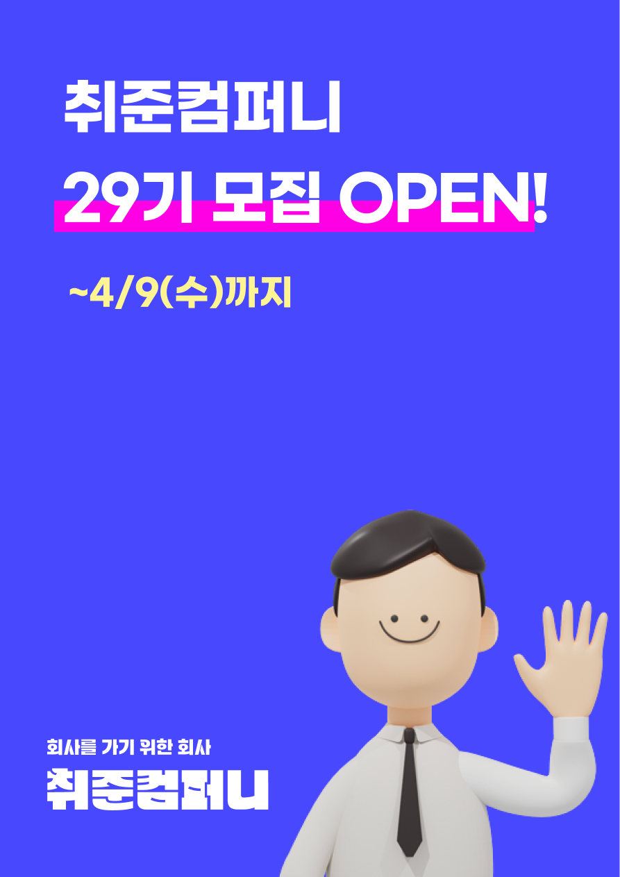 취준컴퍼니 29기 입사 지원서 구글 폼 제출하기 :https://forms.gle/r4qovMK7txmyLHS46