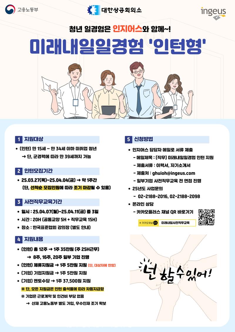 📢 고용노동부 2025년 미래내일일경험 1기수 체험해보고 싶은 미취업청년 모집