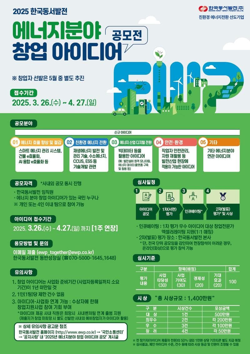 총 시상규모 : 1,400만원 (대상 1건, 최우수 2건, 우수 3건, 장려 4건)