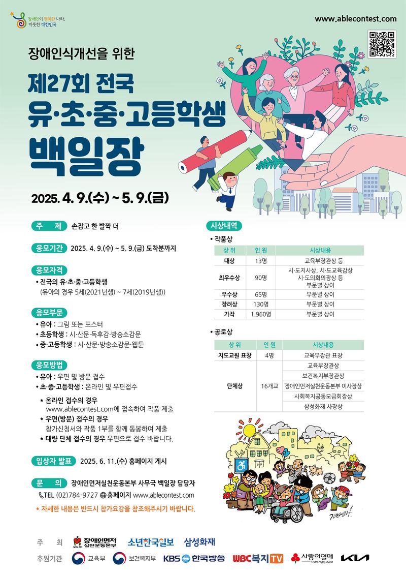 사. 문 의 : 장애인먼저실천운동본부 백일장 담당자(02)784-9727 / 홈페이지 www.ablecontest.com