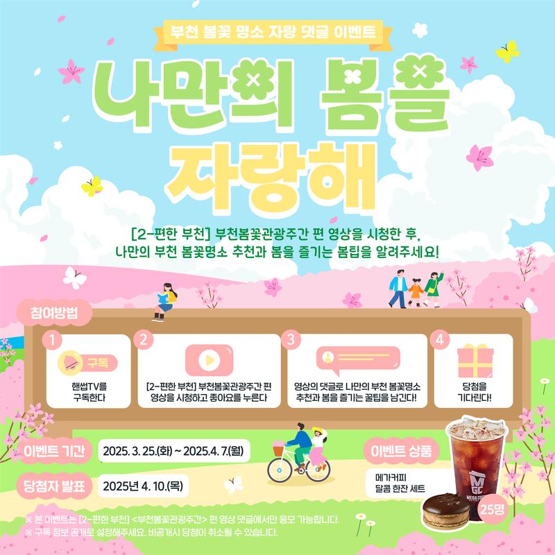 - 본 이벤트는 2-편한 부천 [부천봄꽃관광주간] 편 영상 댓글에서만 응모 가능합니다.