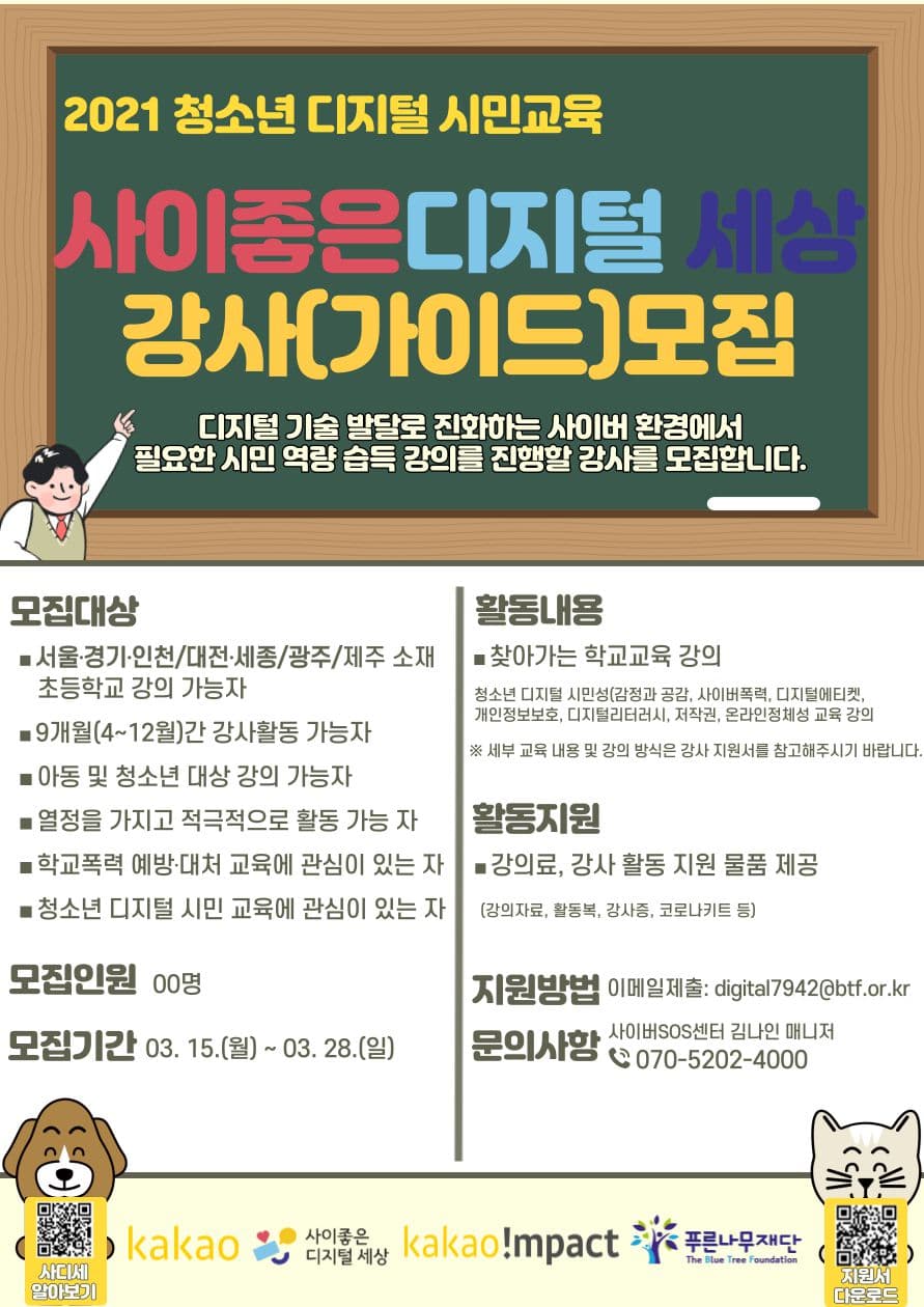 사이좋은 디지털 세상으로 여행을 떠날 청소년에게 가이드(강사)가 되어 강의를 진행할 전문 강사님을 모집합니다!!😆