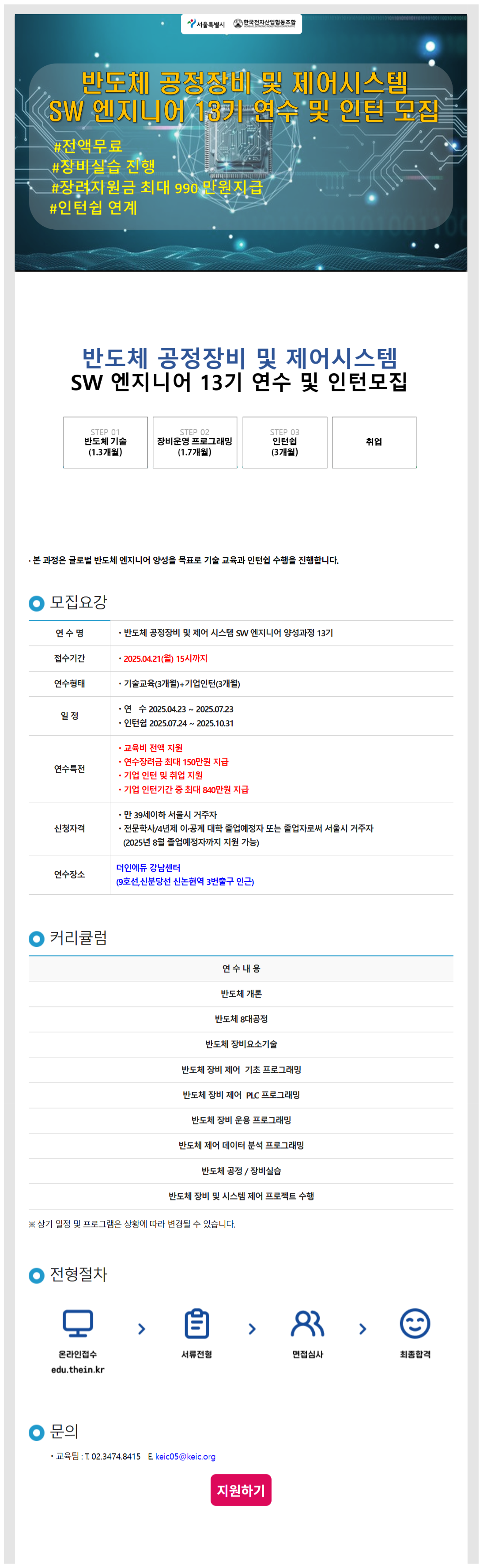 [서울시] 반도체 공정장비 및 제어시스템 SW 엔지니어 13기 연수 및 인턴 모집