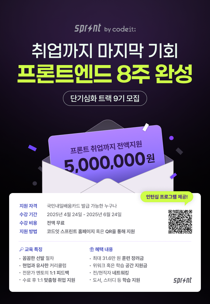 개발자 취업 여정의 끝까지 코드잇 스프린트가 함께할게요.