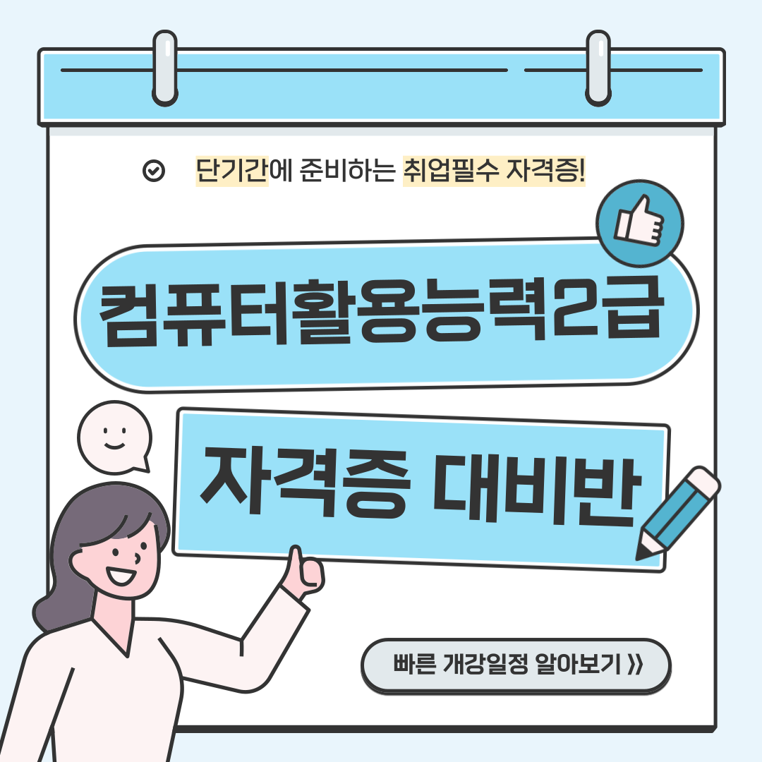 [마감임박] 컴퓨터활용능력2급 자격증 취득 국비지원반 모집!!
