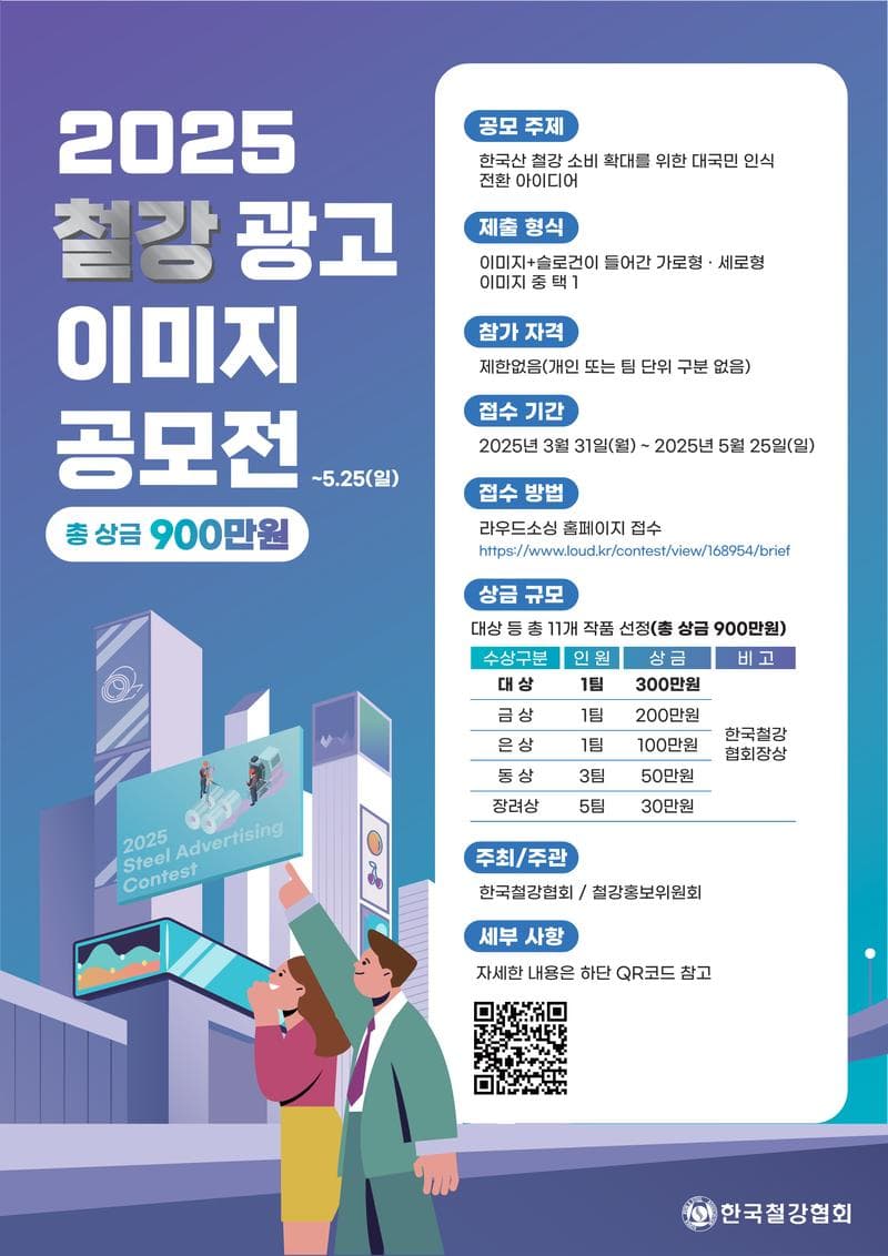 ② 수상자에게 주어지는 상금은 저작재산권 양도에 따른 비용으로 수상작의 지적재산권은 한국철강협회에 귀속 됩니다, 수상작은 반환되지 않습니다.