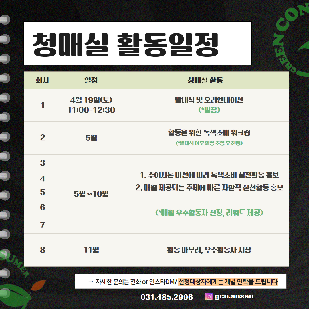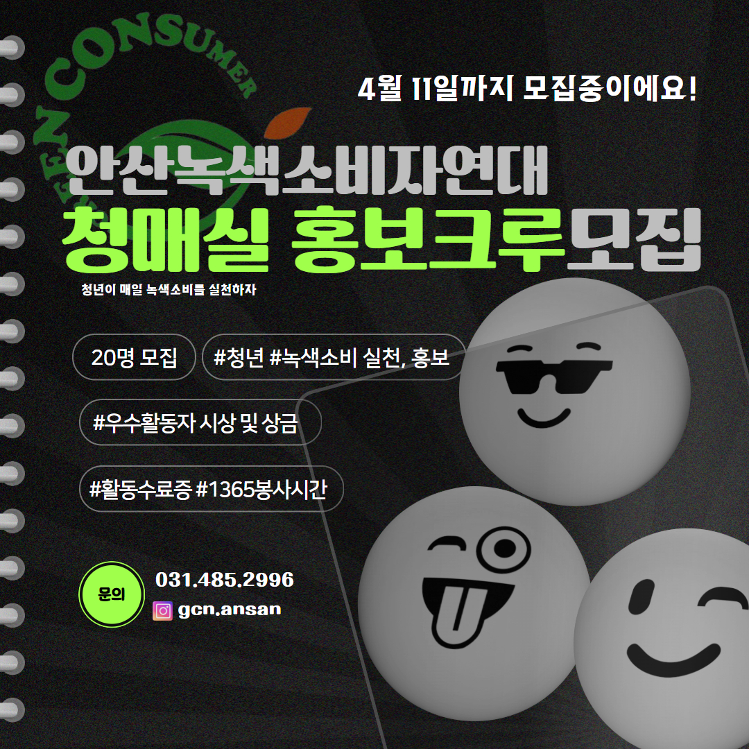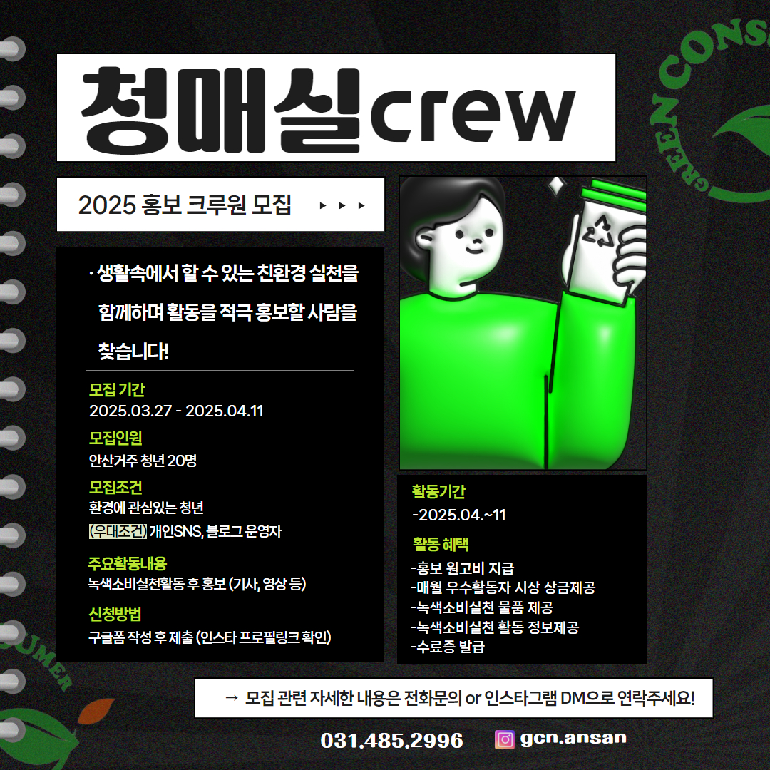 안산녹색소비자연대와 함께할 청년홍보크루 청매실 (청년이 매일 녹색소비를 실천하자)을 모집합니다!