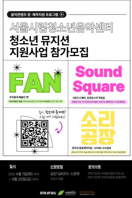 [서울시립청소년음악센터 청소년 뮤지션지원사업 참가자 모집]