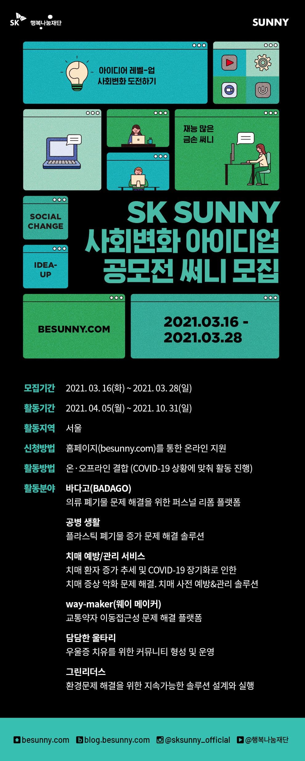 SK 대학생 자원봉사단 SUNNY 사회변화 아이디업 공모전 써니 모집
