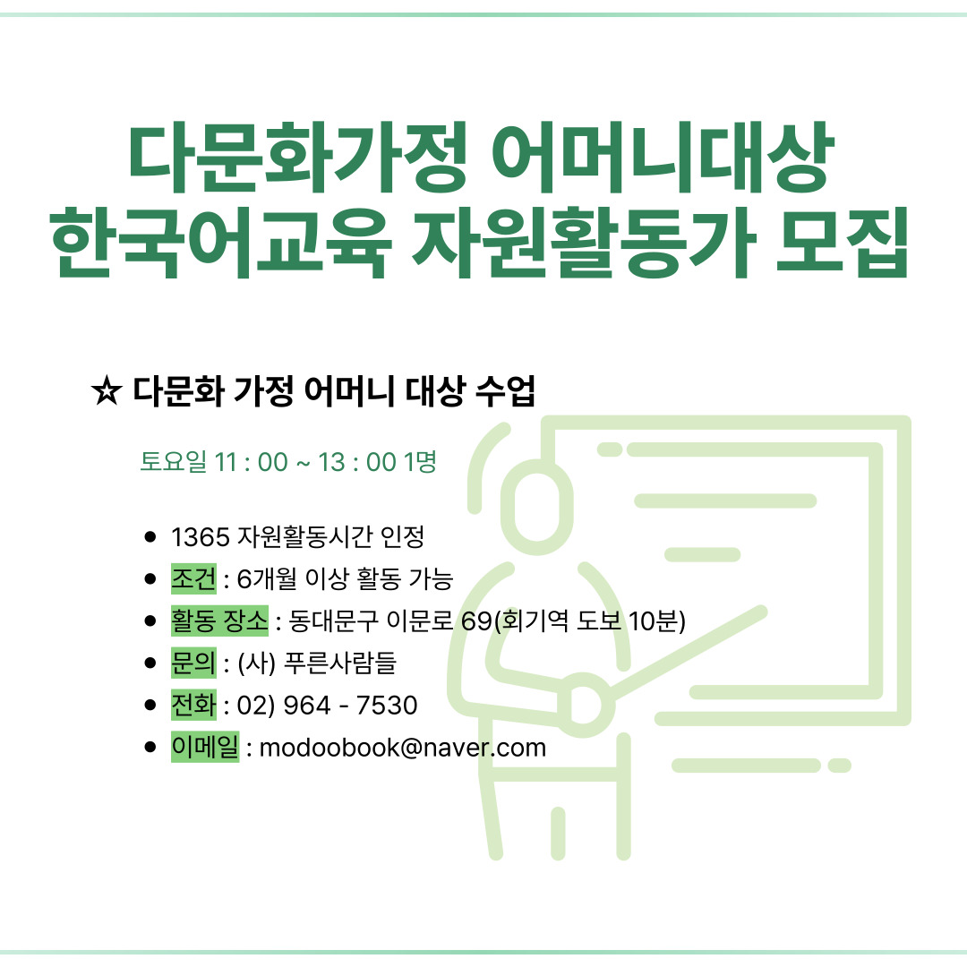 ✨모두다양성센터 자원활동 교사 모집✨
