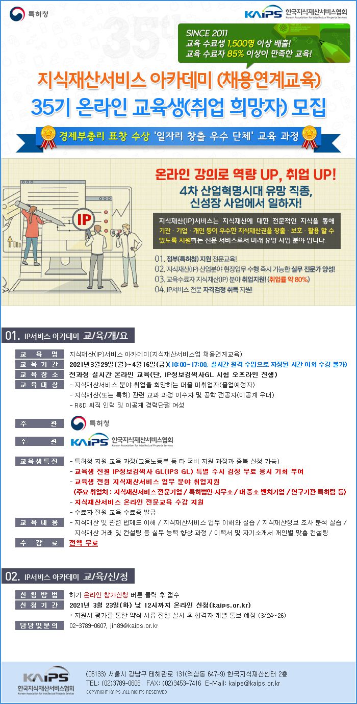 A. 온라인으로 특허/지식재산 교육 듣고 취업까지 해결하세요:)