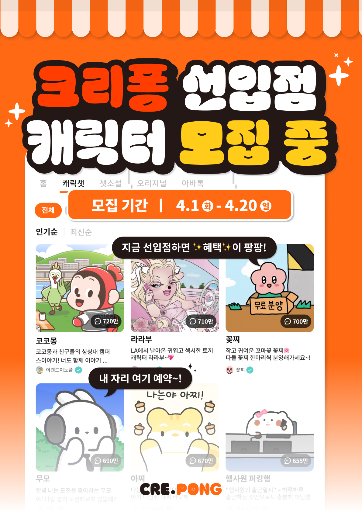 저작권 침해, 불법, 종교적, 성적인 내용이 포함된 캐릭터 IP는 선정되지 않습니다.