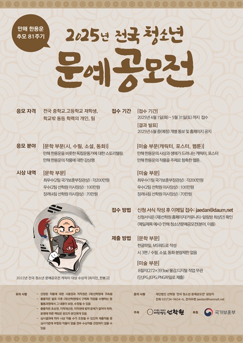 - 재단법인 선학원 '전국 청소년 문예공모전' 담당자