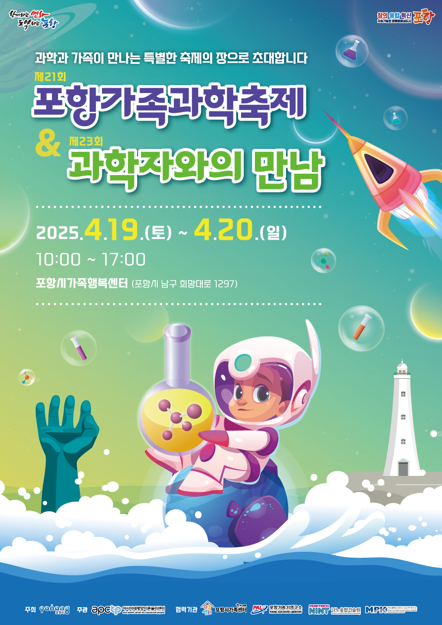 과학을 사랑하는 모든 이들을 위한 축제가 다가옵니다! 오는 4월 19일부터 20일까지, 아시아태평양이론물리센터(APCTP)가 주관하는 '제21회 포항가족과학축제'와 '제23회 과학자와의 만남'이 포항에서 개최됩니다.