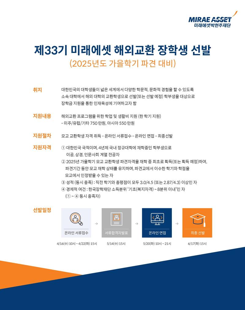 ※ 보다 자세한 선발내용 미래에셋박현주재단 홈페이지 참고(재단 홈페이지 바로가기)