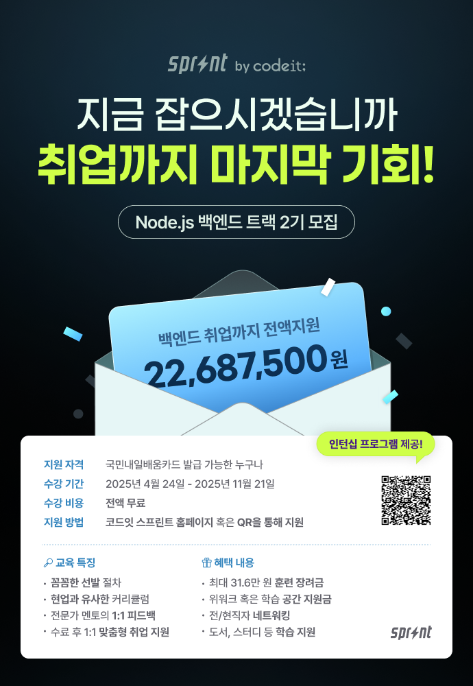 코드잇 스프린트 지금 모집 중 ➡️ https://code.it/2TiIbRQ
