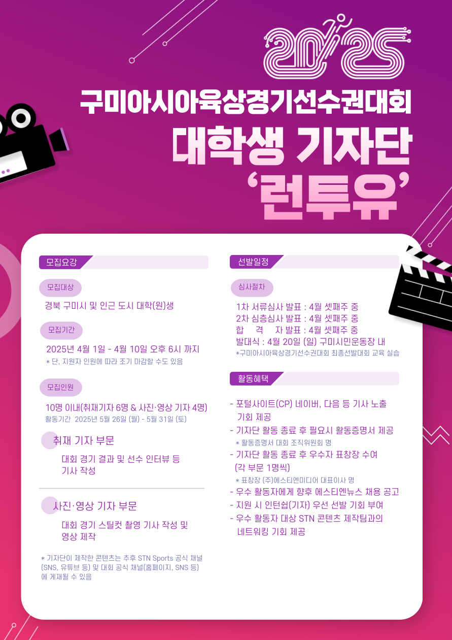 ■공식 명칭 : 2025 구미아시아육상선수권대회 대학생 기자단 '런투유'