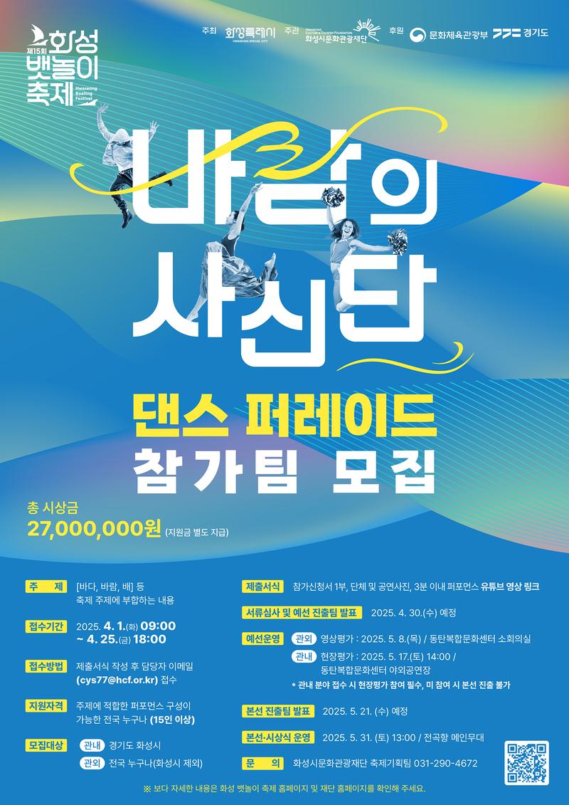 「제15회 화성 뱃놀이 축제」바람의 사신단 댄스 퍼레이드 참가팀 모집 공고 안내