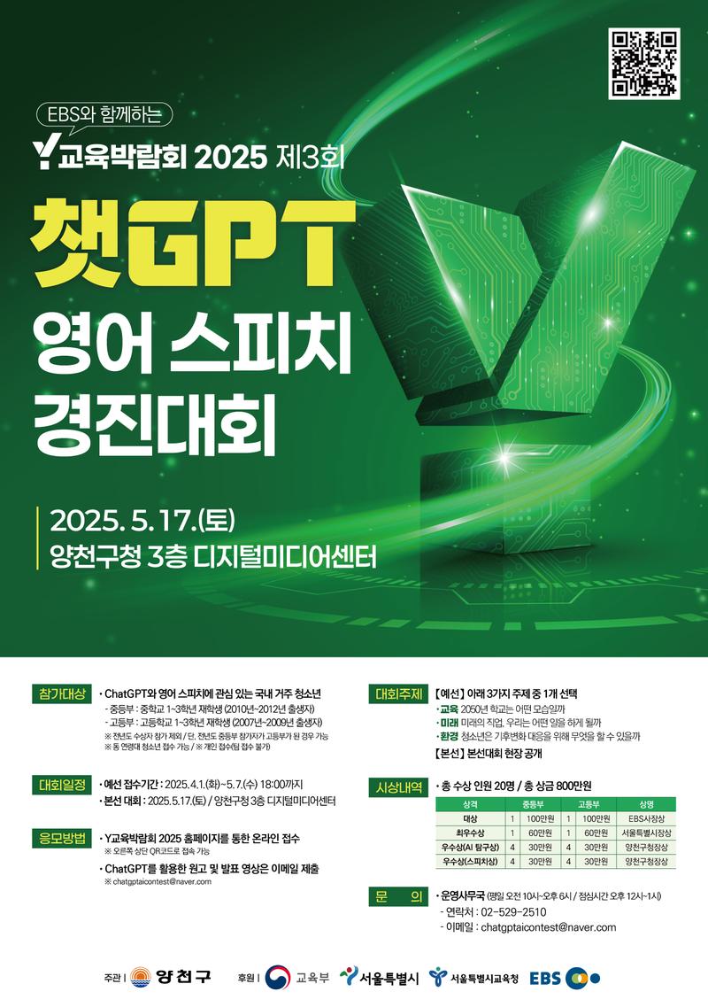 - 우수상(AI 탐구상)(양천구청장상) : 중등부(4) 30만원 / 고등부(4) 30만원
